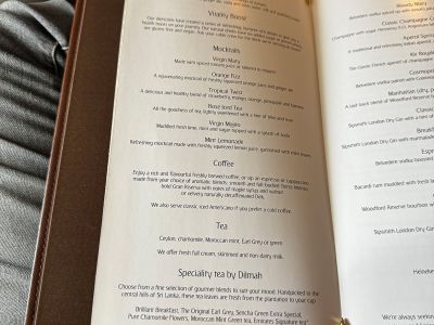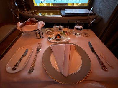 Speisen und Getränke in der Emirates First Class im Airbus A380