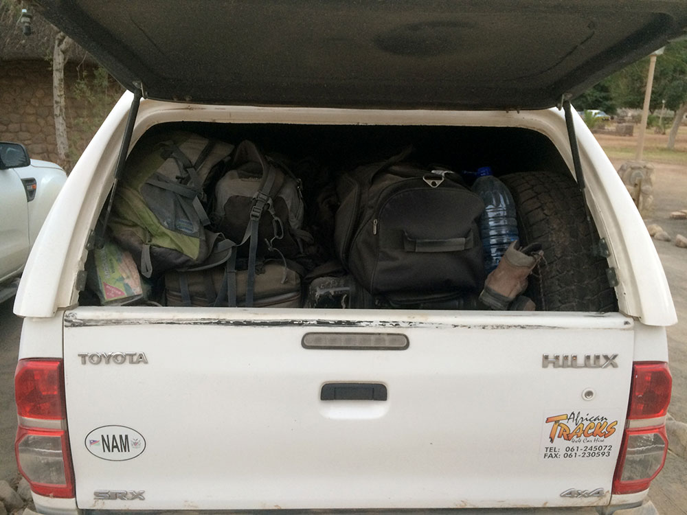 Wir hatten einen Toyota Hilux (4×4) mit Doppelkabine, zwei Dachzelten und Campingausstattung. Vermieter vor Ort war African Tracks, aber gebucht haben wir in Deutschland bei Nature Trekking. Ein Fahrer holte uns morgens am Flughafen ab.