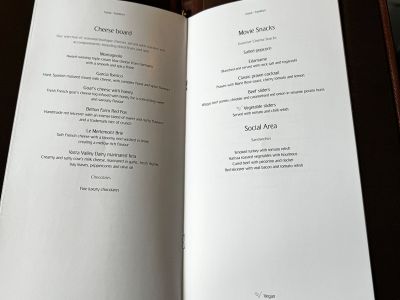 Er brachte den Pyjama zusammen mit der Speise und Getränkekarte aus der ich mir gerne schon einmal eine Vorspeise und einen Hauptgang aussuchen könne. Ich entschied mich zunächst erst einmal für den Kaviar, da das irgendwie typisch für die Fist Class ist. Und wie es der Zufall so will mag ich (guten) Kaviar sogar sehr gerne. Das passte also.