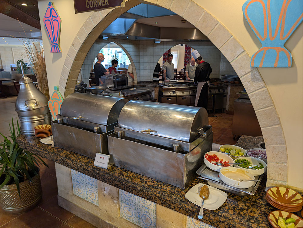 Wir haben abends einmal das Buffet getestet, weil die Außentemperatur bei leider nur 12° C lag und das für das El Kababgy einfach zu kalt war. Für italienisches und asiatisches Essen muss ich nicht nach Ägypten. Das Buffet am Abend hat mich leider nicht vom Hocker gehauen und hat ca. 23 € gekostet.