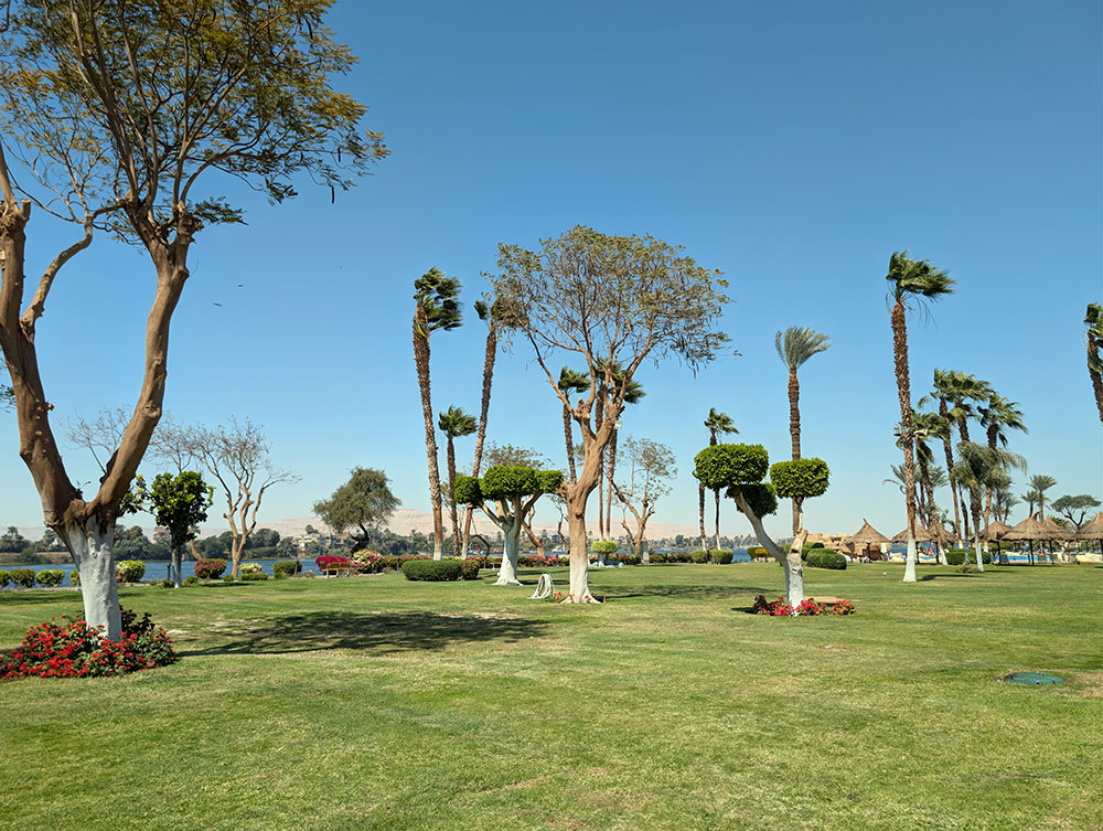 Das Hotel liegt absolut idyllisch auf einer Privatinsel mitten im Nil. Hier hört man maximal Boote, die auf dem Fluss vorbeifahren.